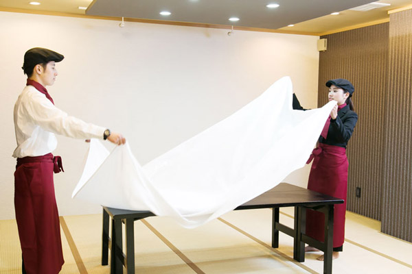 プロのデザイナーがお料理に合わせたフラワーアレンジメントでテーブルを華やかに演出します。