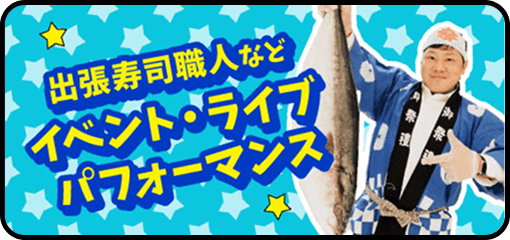 出張寿司職人、解体ショー、お客様参加型のライブパフォーマンスなど、様々なオプションをご用意。